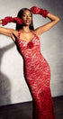 Veromca Boyundan Bağlamalı Çiçek Dantel Maxi Elbise