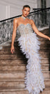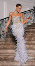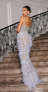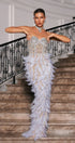 Vieby Straplez Taşlı Tüy Maxi Elbise