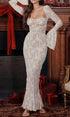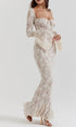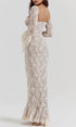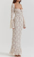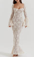 Vintage Krem Dantelli Maxi Elbise