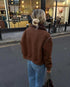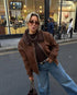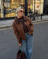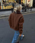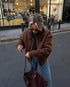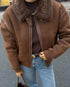 Vintage Kahve Kuzu Yünü Yaka Ceket