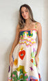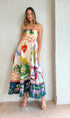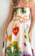 Sezgilerini giy üstüne… Visión elbise; kalp, göz, güneş, kuş ve spiral formlar gibi sembollerle dolu, adeta bir bilinçaltı haritası. Sanatsal dokunuşlarla hayat bulan bu tasarım, ince askıları ve dökümlü kesimiyle hem feminen hem cesur bir görünüm sunuyor. Her detayında özgürlük ve ifade gücü var.