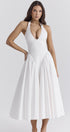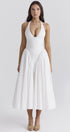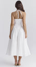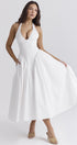 Beyaz Pamuklu Boyundan Bağlamalı Midi Sundress