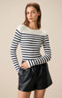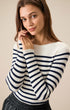 Lacivert Kayık Yaka Dar Kesim Çizgili Kazak