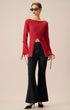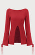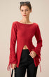 Kırmızı Fırfırlı Kol Yırtmaçlı Kazak
