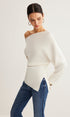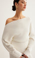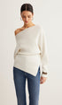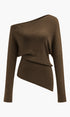 Yün Karışımlı Asimetrik Yaka Triko Bluz