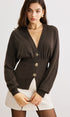 Yün Karışımlı Büzgülü Düğmeli Triko