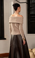 Yün Karışımlı Düz Omuz Açık Kazak