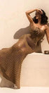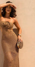 Yedda Halter Yaka Tığ İşi Uzun Elbise