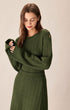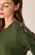 Yeşil Yuvarlak Yaka Bol Düğmeli Kazak