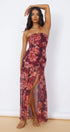 Yetta Baskılı Straplez Yırtmaçlı Uzun Elbise