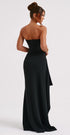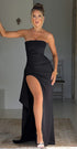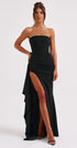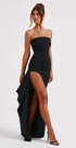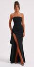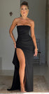 Vücudunuza mükemmel uyum sağlayan lüks streç krepten üretilen zamansız maksi elbisemiz Zafira ile kendinizi bir siren gibi hissedin. Straplez yakası, göğüs ve bel kısmında pilise detayları bulunan bu gösterişli görünümün bir tarafında uyluk yüksekliğinde yırtmaç ve yumuşak drape fırfır bulunur. Yumuşak dalgalı saçlarınız ve ışıltılı makyajınızla eşleştirin.
