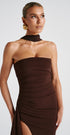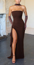 Zafira, sadece bir elbise değil; karizmanızı fısıldayan bir duruştur. Straplez üst kısmı, vücudu saran formu ve dramatik yırtmaç detayıyla geceye hükmetmenizi sağlar. Transparan eldiven ve boyna dolanan tül detayı, bu tasarımı başlı başına ikonik kılar.