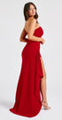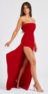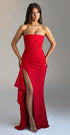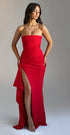 Vücudunuza mükemmel uyum sağlayan lüks streç krepten üretilen zamansız maksi elbisemiz Zafira ile kendinizi bir siren gibi hissedin. Straplez yakası, göğüs ve bel kısmında pilise detayları bulunan bu gösterişli görünümün bir tarafında uyluk yüksekliğinde yırtmaç ve yumuşak drape fırfır bulunur. Yumuşak dalgalı saçlarınız ve ışıltılı makyajınızla eşleştirin.