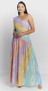 Zanna Baskılı Tek Omuz Flare Maxi Elbise