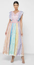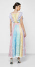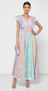 Zanna Baskılı Fırfırlı V Yaka Kemerli Uzun Elbise
