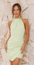 Klasik zarafetin çağdaş tasarımla buluştuğu Sophia Mini Elbise ile bakışları üzerinize çekin. Bu mini uzunlukta elbise, iki düğmeli, yüksek yakalı ve sofistike bir dokunuş katıyor. Pilili dokulu kumaş ve çapraz ön kısımdaki büzgülü detaylar hoş bir siluet yaratırken, açık arka stil modern bir görünüm katıyor.