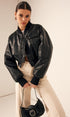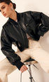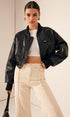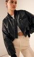 Fermuarlı Cepli Pu Deri Kısa Ceket