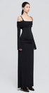 Zoey Drapeli Siyah Uzun Elbise, şık ve çok yönlü bir parça…