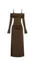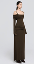 Zoey Drapeli Kahverengi Uzun Elbise